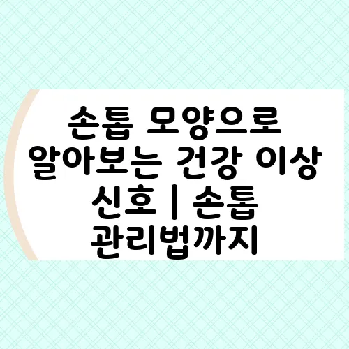 안녕하세요! 오늘은 우리의 손톱이 어떻게 건강 이상 신호를 보이는지를 알아보는 시간을 가져보려고 합니다. 손톱은 단순히 미적인 부분을 넘어서, 손톱 건강과 관련된 많은 정보를 드러낼 수 있습니다. 어떻게 손톱의 모양이나 상태를 통해 우리의 건강을 점검할 수 있는지, 또 어떻게 손톱을 잘 관리해야 하는지에 대해서도 함께 이야기해 보겠습니다. 특히 건강한 손톱을 유지하기 위한 손톱 관리법에 대한 정보도 포함되어 있어요. 자, 그럼 시작해 볼까요?