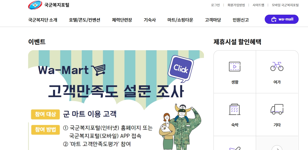 국군복지포털 와몰 홈페이지