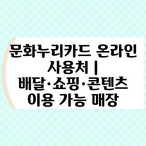 문화누리카드는 온라인에서도 사용할 수 있는 다양한 매장이 있습니다. 배달 앱(예: 배달의 민족, 요기요), 온라인 쇼핑몰(예: G마켓, 11번가) 및 콘텐츠 이용 플랫폼(예: 카카오페이지, 네이버시리즈) 등에서 사용이 가능합니다. 다만, 각 플랫폼마다 사용 가능한 조건이 다를 수 있으니, 구매 시 유의하시기 바랍니다.