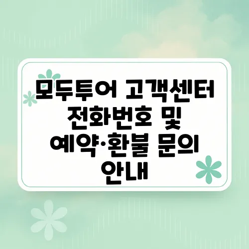 모두투어 고객센터를 통해 얻는 정보는 여행을 보다 원활히 진행할 수 있도록 도와줍니다. 모두투어 예약 문의, 모두투어 환불 정책, 및 모두투어 전화번호에 대한 명확한 이해는 여행 준비의 첫걸음이 될 것입니다. 고객센터의 다양한 서비스는 여행의 출발점에서 부터 안전하게 여행을 마치는 순간까지 함께 해 줄 것입니다. 여러분의 여행이 더욱 즐겁고 유익한 경험이 되기를 바랍니다.