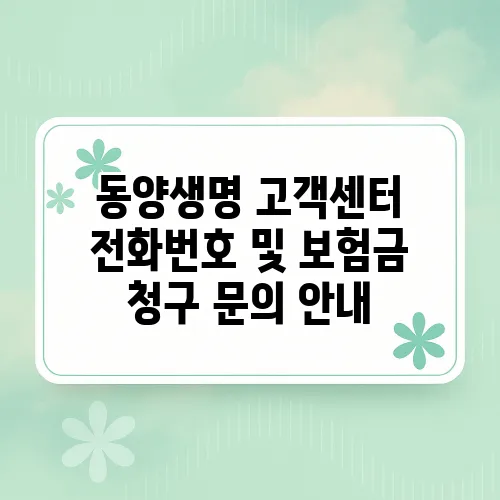 동양생명 고객센터에 대한 이해는 보험 상품 이용 시 매우 중요합니다. 고객센터를 통해 필요한 정보를 정확히 얻을 수 있으며, 보험금 청구와 같은 절차를 원활하게 진행할 수 있습니다. 오늘은 동양생명 고객센터의 전화번호 및 보험금 청구 문의 방법에 대해 자세히 설명드리겠습니다. 특히, 동양생명 보험 문의에 대한 다양한 질문을 효과적으로 해결할 수 있는 방법을 안내할 예정입니다. 그러니, 편안하게 정보를 살펴보시고, 궁금한 점이 있으면 언제든지 문의해주셔도 좋습니다.