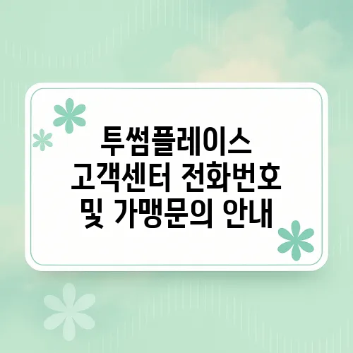 안녕하세요! 오늘은 많은 사랑을 받고 있는 카페 브랜드인 투썸플레이스의 고객센터 전화번호와 가맹 문의에 대해 알아보려고 합니다. 투썸플레이스는 맛있는 커피와 디저트를 제공하며, 고객들의 문의나 요청에 신속하게 대응하기 위해 고객센터를 운영하고 있습니다. 아래에서는 투썸플레이스 고객센터의 전화번호, 서비스를 이용하는 방법, 그리고 가맹 문의에 관한 정보들을 자세히 정리해보겠습니다. 이 정보가 여러분에게 유용하게 활용되기를 바랍니다!