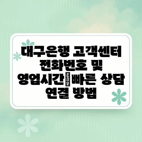 안녕하세요. 오늘은 대구은행의 고객센터 전화번호와 영업시간에 대해 자세히 알아보겠습니다. 은행을 이용할 때 필요한 정보나 궁금증이 있을 때, 고객센터는 정말 중요한 역할을 합니다. 대구은행 고객센터에 연결하기 쉬운 방법과 필요한 정보들을 면밀히 살펴보겠습니다. 이 글을 통해 대구은행의 고객서비스와 상담 연결 방법을 도움이 되는 정보로 구성해 보았으니, 함께 살펴보시죠.