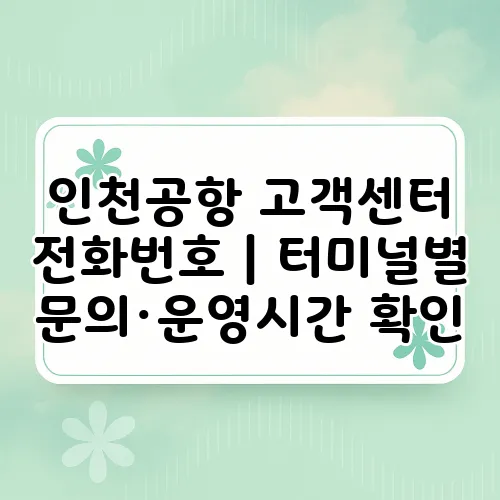 인천공항 고객센터의 전화번호와 운영시간에 대한 정보를 통해, 이용객은 공항에서의 불편함을 최소화할 수 있습니다. 다양한 서비스를 제공하는 고객센터에 언제든지 문의하여 필요한 도움을 받으세요. 인천공항 고객센터를 통해 필요한 정보를 쉽게 찾고, 더욱 편리하게 공항을 이용하시길 바랍니다.