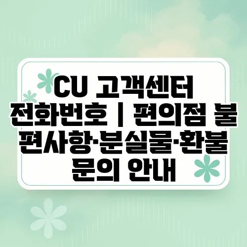 안녕하세요! CU 고객센터에 대해 궁금한 점이 있다면, 여러분은 올바른 곳에 오셨습니다. 오늘은 CU 고객센터의 전화번호와 함께, 편의점에서 발생할 수 있는 불편사항을 어떻게 해결할 수 있는지, 그리고 분실물이나 환불에 관한 문의 방법에 대해 자세히 안내해 드리겠습니다. CU는 한국에서 인기 있는 편의점 중 하나로, 고객 편의를 위해 다양한 서비스와 지원을 제공하고 있습니다. 그렇다면 CU의 고객센터에 연락하는 과정과 그 필요성에 대해 이야기해볼까요?