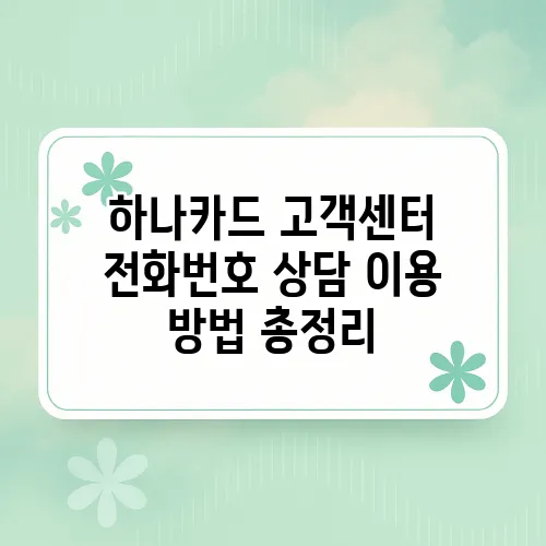 👉 하나카드 상담번호 안내